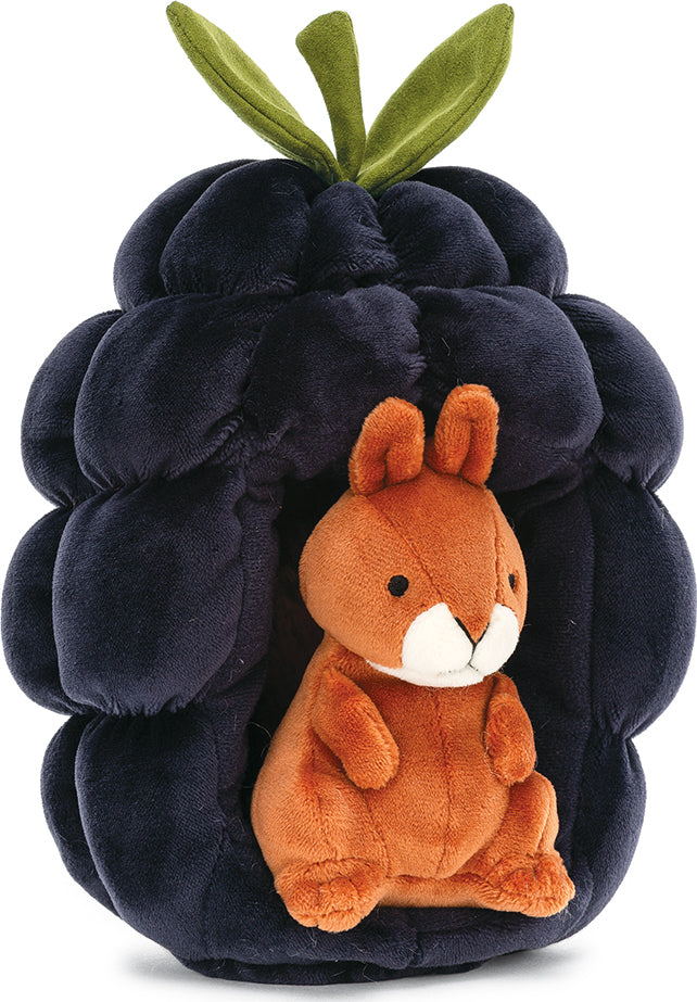 Everyone needs a secret hideout and Brambling squirrels is berry fine indeed! This gingery squirrel has found a blackberry just the right size to turn into a treehouse! With stretchy segments of plump bluey-purple, a cozy lining, and fresh green leaves, it's ideal for a swishy-tailed scamp!